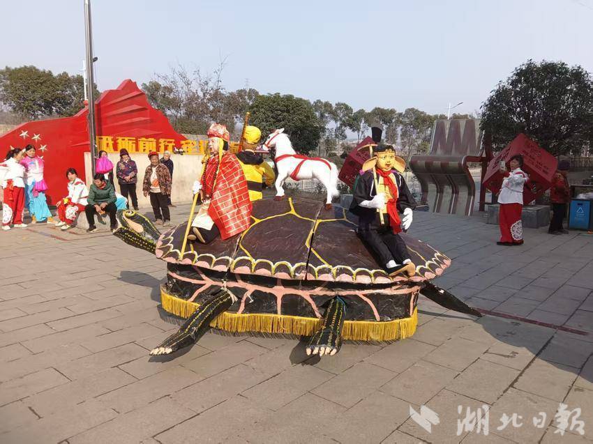 湖北日报客户端讯(通讯员张家国、郑荣虹、李晗)马年迎新春,传统非遗年味浓。2月2日,丹江口市六里坪镇八烈士纪念广场热闹喜庆,由六里坪村两位民间艺人亲自制作的传统表演工艺品“唐僧师徒过通天河”“蛟龙出水”“白鸽追蚌”“金牛耕田”“麒麟送宝”“龙船凤凰”等独具特色的传统艺术珍宝伴着欢乐的均州大秧歌舞,通过遨游驰骋、奔腾自如的表演,活灵活现呈现在大家眼前,让消失了近60年的非遗民俗和民间文化得以传承。